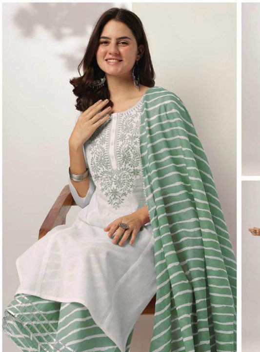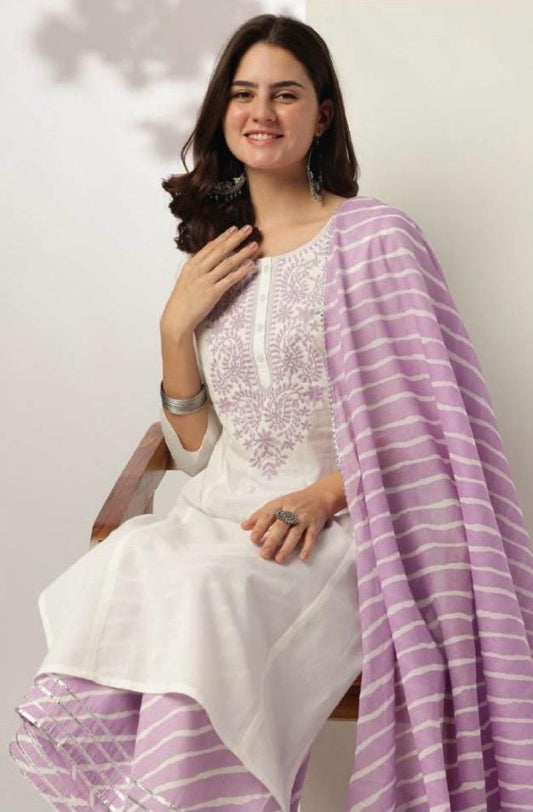 Elegant Cotton 3-Piece Kurta Set with Printed Dupatta & Palazzo